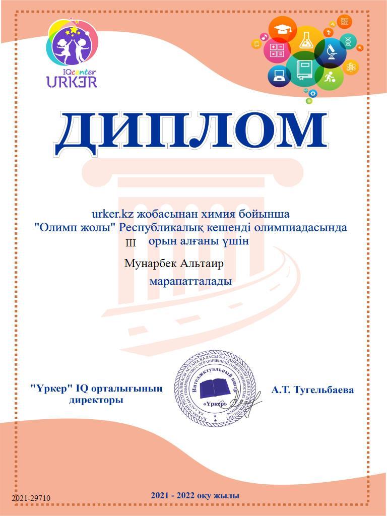 26 қараша 2021 0 1 2 3 4 5 "Үркер" олимпиадасының химия пәнінен жеңімпаздары Химия пәнінің мұғалімі: Мұхаметчина Б. Т