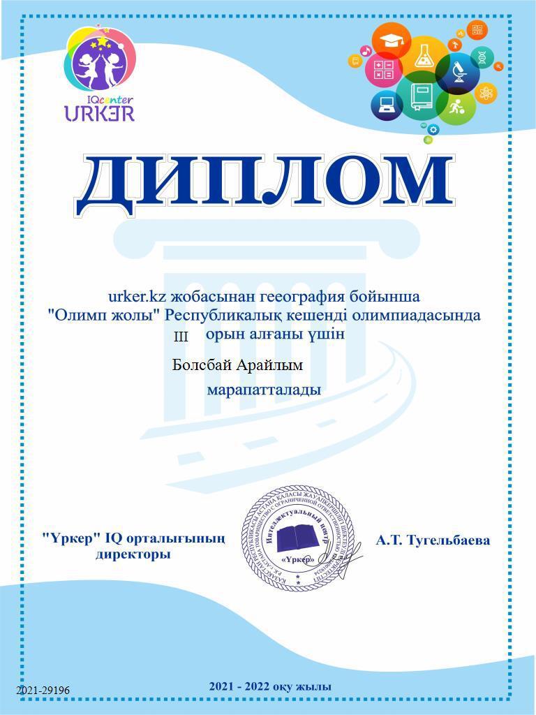 29 қараша 2021 0 1 2 3 4 5 География пәнінің "Үркер" олимпиадасындағы жетістіктері Пән мұғалімі: Қоржынбаева М. М