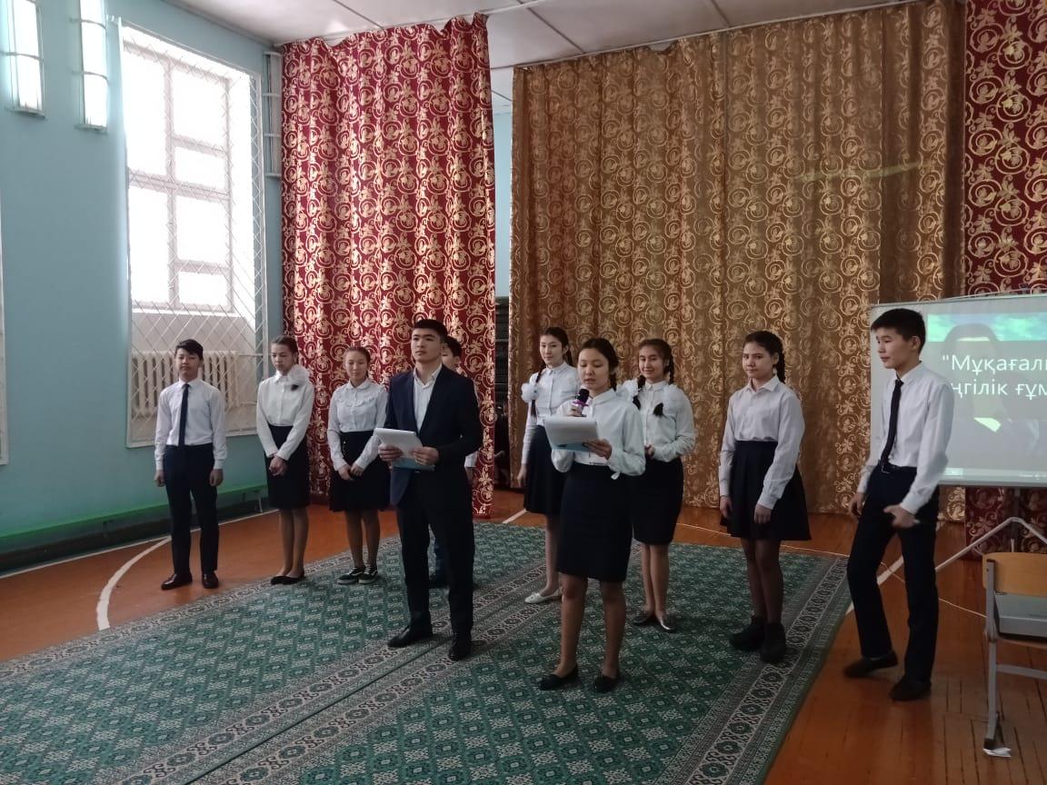 07 ақпан 2019 0 1 2 3 4 5 "Мұқағали-мәңгілік ғұмыр Бүгін 7-ақпан ақиық ақын М.Мақатаевтың туған күніне орай ұйымдастырылған әдеби-сазды кеш өтті. Кеш мақсаты: оқушыларды ақынның шығармашылығымен таныстыру, ақын өлеңдерінде көрсетілген патриоттыққа, елжандылыққа баулу.