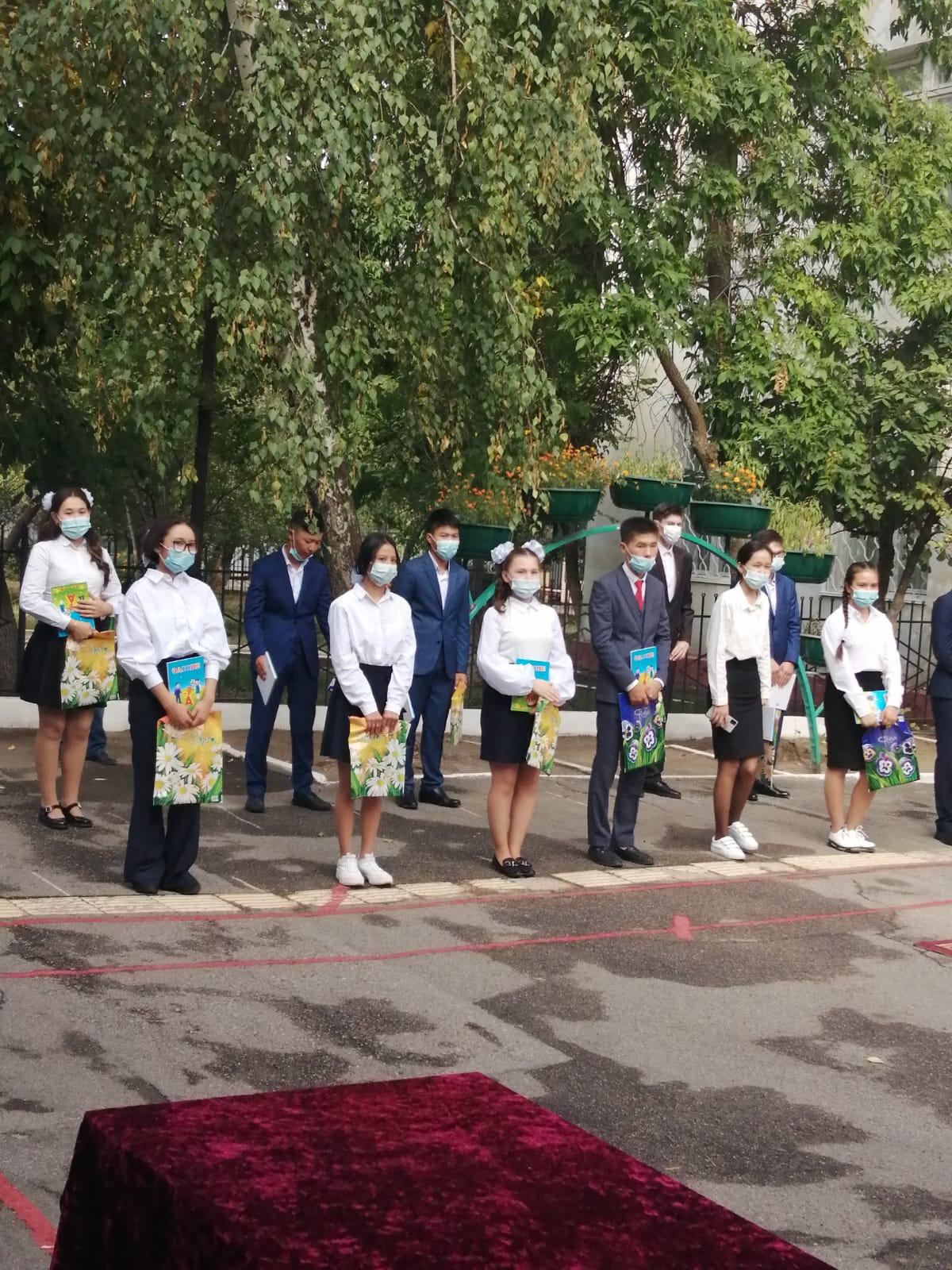 1 сентября в нашей школе-интернате состоялось торжественное собрание, посвященное Дню знаний, строго соблюдая все карантинные требования в связи с эпидемиологической обстановкой в стране. Главная цель сбора: донести до учащихся, что День знаний-это большой праздник, привить чувство любви к знаниям, воспитать образованного, воспитанного гражданина нашей страны. В мероприятии приняли участие только 1 класс и 11 класс. В ходе собрания состоялось торжественное вручение 1-го класса учебнику "Әліппе" - главной новости текущего года. Торжественное мероприятие продолжилось звонком учащихся 1-х классов и началось в традиционном формате учебного года нашей школы-интерната.
