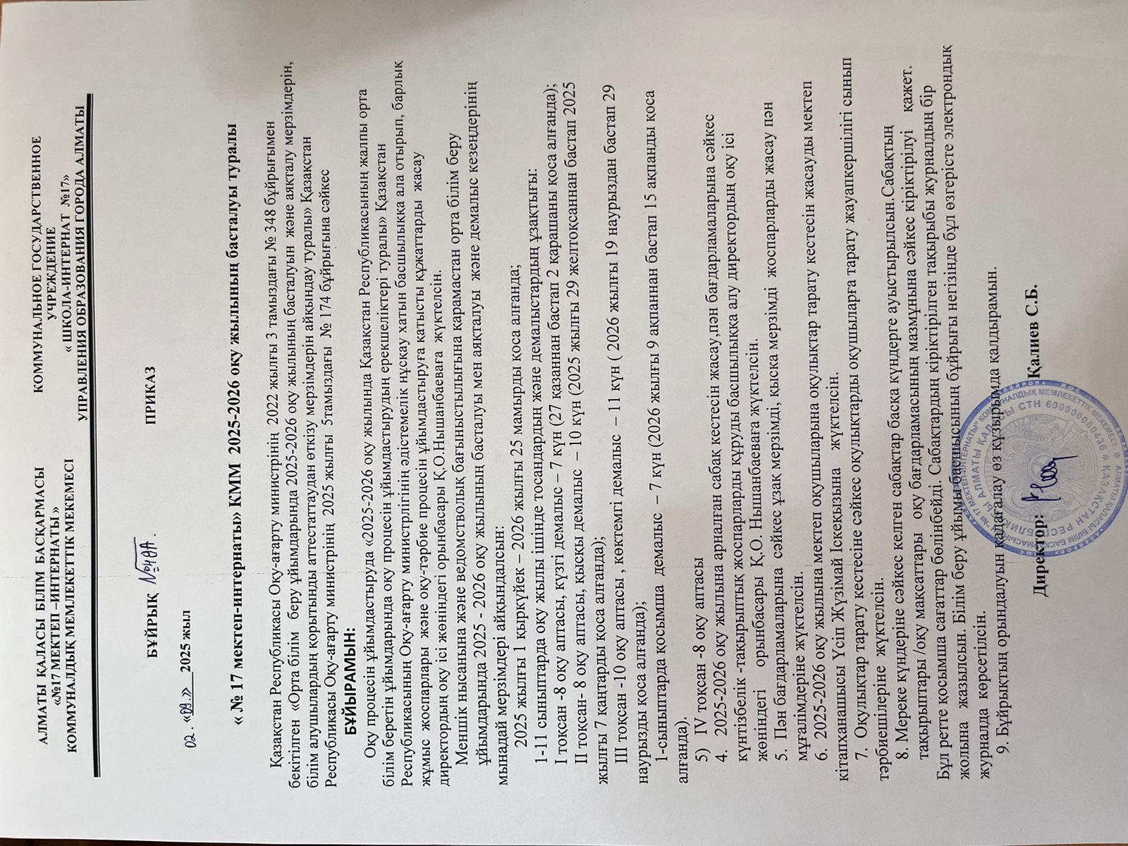 2025-2026 оқу жылының басталуы туралы бұйрық.