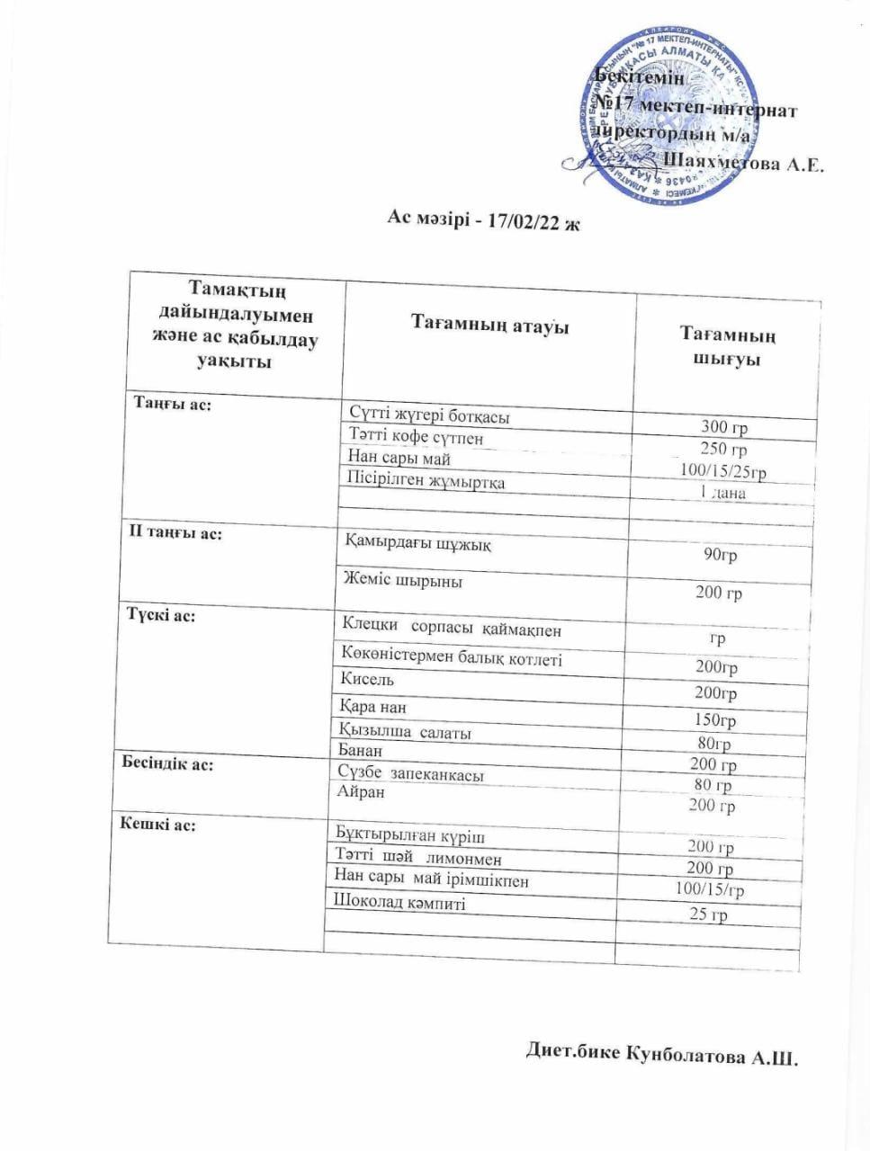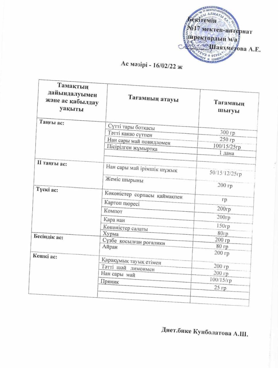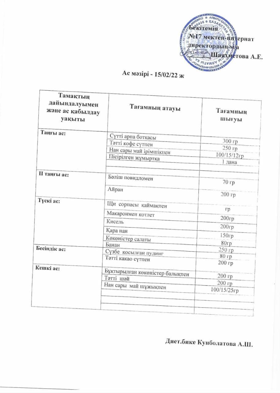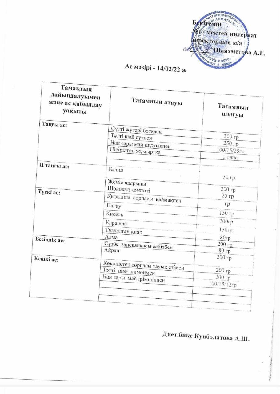 14.02.-18.02.2022 аралығындағы ас мәзірі