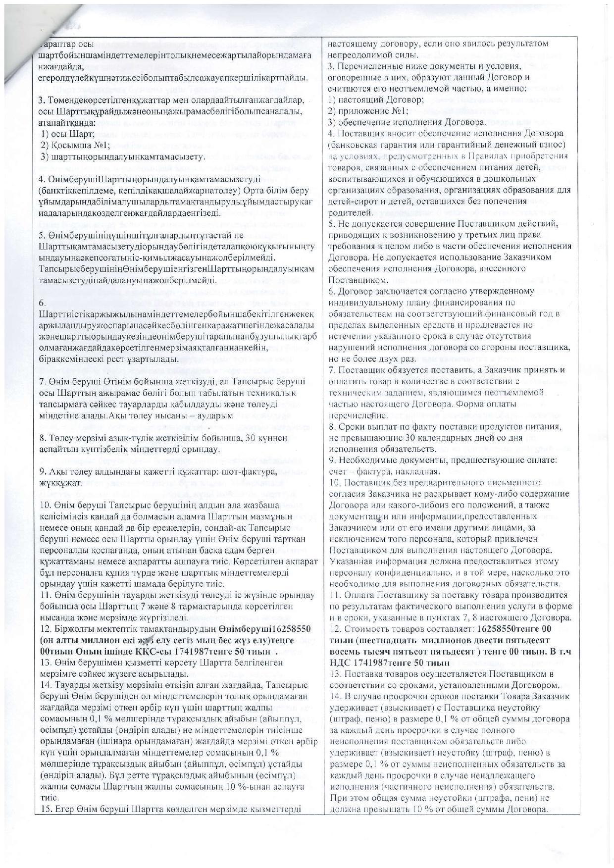 Договор №2 Дары Осени ТОО
